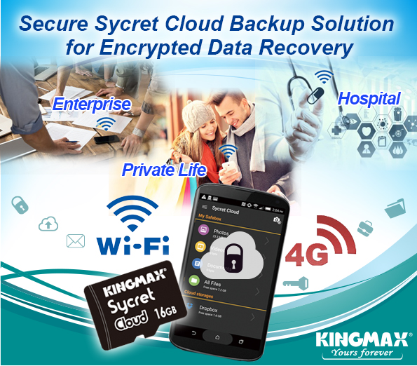 To make using the Internet of Things (IoT) and Internet of Beings (IoB) applications safer, KINGMAX launches Sycret Cloud, the world’s most advanced innovative design for Smartphone encryption card and app, a portable device is easy to encrypt Smartphone data via Security IC packaging technology using encrypted multiple Sycret keys which enables perfectly safe to transfer files of simple plug and play for smart phones anytime anywhere. This unique real-time encrypted Cloud storage safeguards the security and convenience of mobile devices used by the general public, corporate Shadow IT, and mobile health and medical care, enabling secure transmission of personal and private information, trade secrets, confidential information, and medical records under the protection of multiple Sycret keys protection measures.