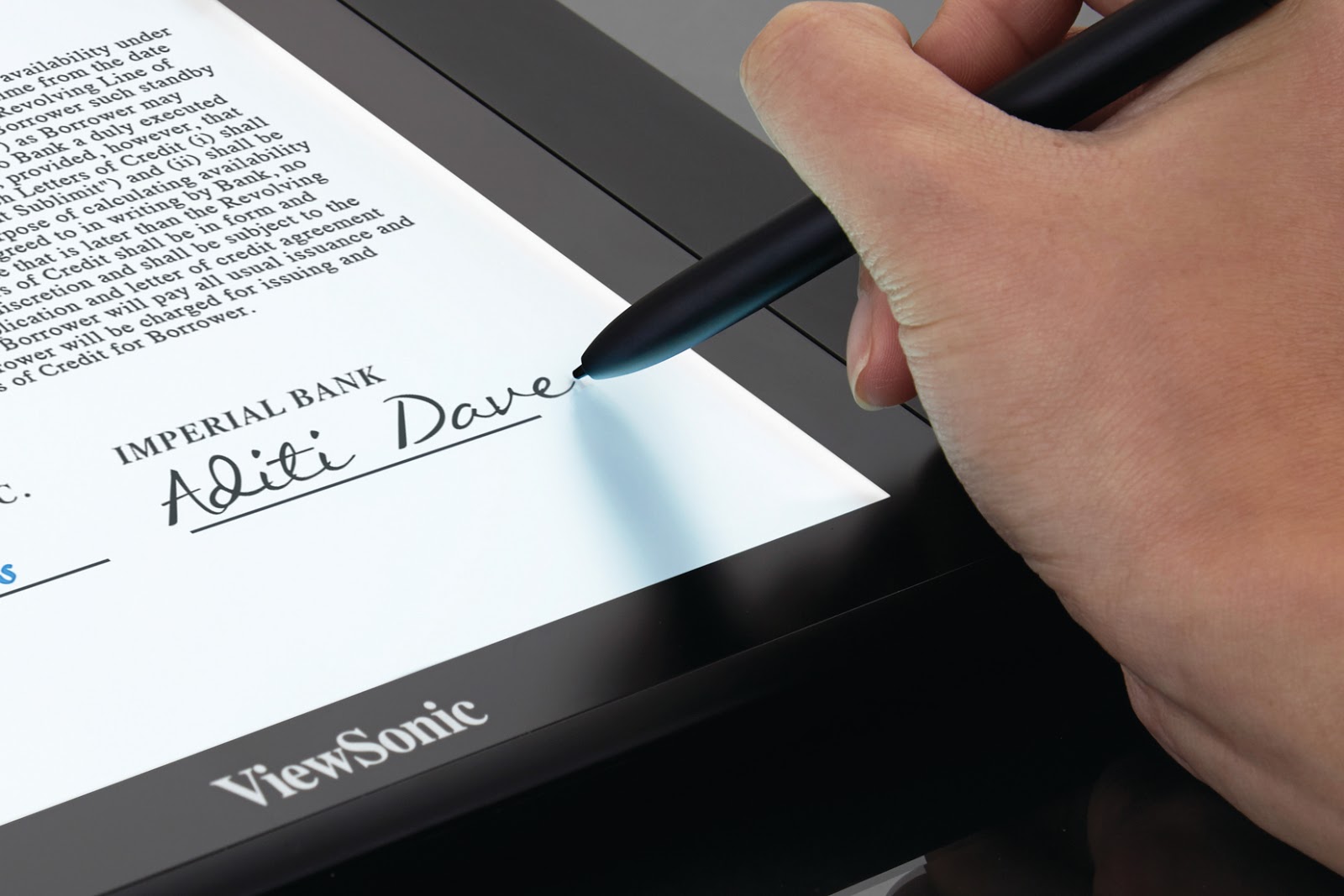 ViewSonic Corp., a leading global provider of visual solution products, introduces new digitizer touch modules for Virtual Teller Machine (VTM) solutions. The modules, ranging from 5-inch to 21.5-inch, provide digital biometric signature capture capabilities with ViewSonic’s exclusive battery-free V Pen, allowing the financial industry to implement authentic e-signature capture and recognition.