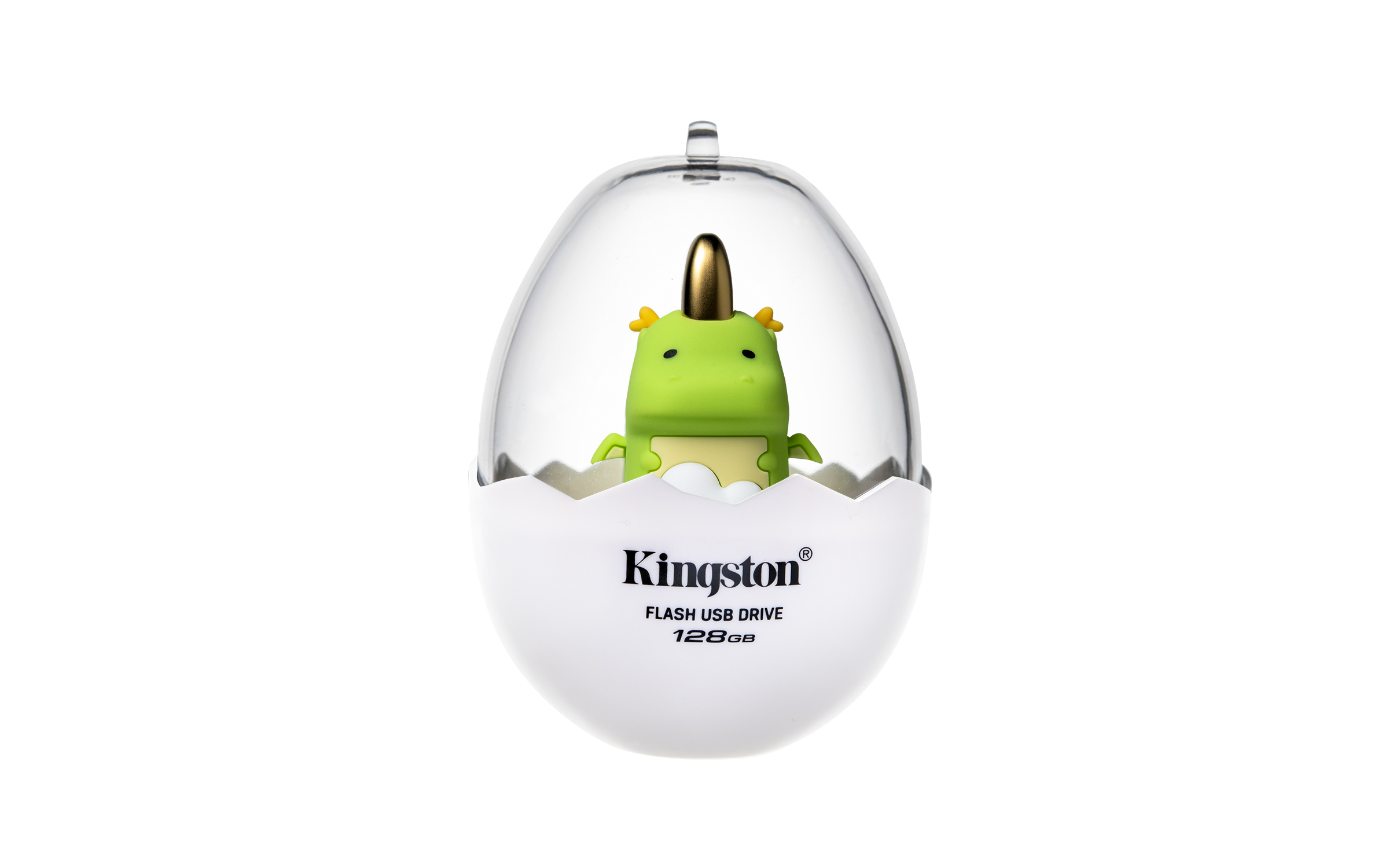The Mini Dragon USB Flash Drive continues the signature design of Kingston’s Mini Collection, featuring a cute and round green dragon hovering in the clouds and cased in a dragon egg packaging. Its smooth rubber exterior ensures resistance to falls and impacts, and its tail is designed as a key ring loop for portability, making it easy to carry files anywhere and everywhere. The Mini Dragon is your go-to companion or seamless digital data storage, file transfers and easy sharing.