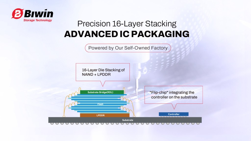 Key technological milestones include the mass production of 16-layer stacked die and 30–40μm ultra-thin die packaging, which support ultra-thin, high-capacity storage widely adopted in smartphones and wearables. In addition, BIWIN’s self-developed test platforms integrate ATE, burn-in, and SLT processes, enhancing product stability and yields across a broad range of applications.