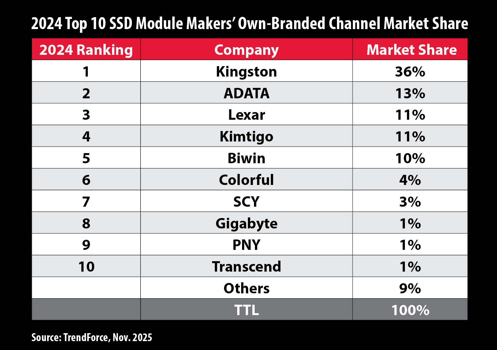 “We are proud to be recognized as the top SSD supplier once again,” said Kingston. “Our commitment to customers and channel partners has fueled the growth of our SSD business. This achievement reflects the dedication of our team, and we are grateful to celebrate this success together.”.